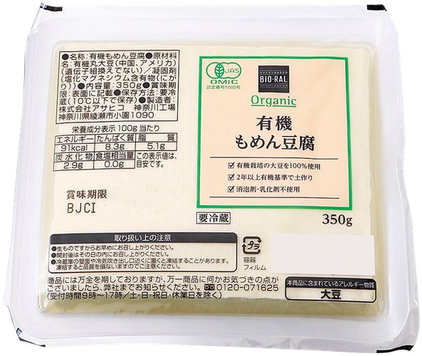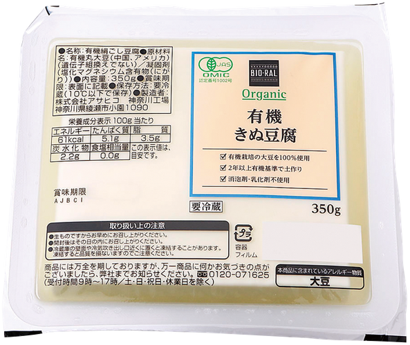 からだに優しい豆腐をご提供するため、有機JAS認定を受けた大豆を100%使用し、有機JAS認定を受けた神奈川県の工場で生産。消泡剤・乳化剤は使用せず有機大豆と海水にがりのみで製造し、大豆の甘みや風味を引き立てました。