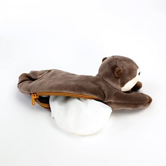 頭の上にファスナーがあり、そこからシリカゲルウォーマーを出し入れできますよ。