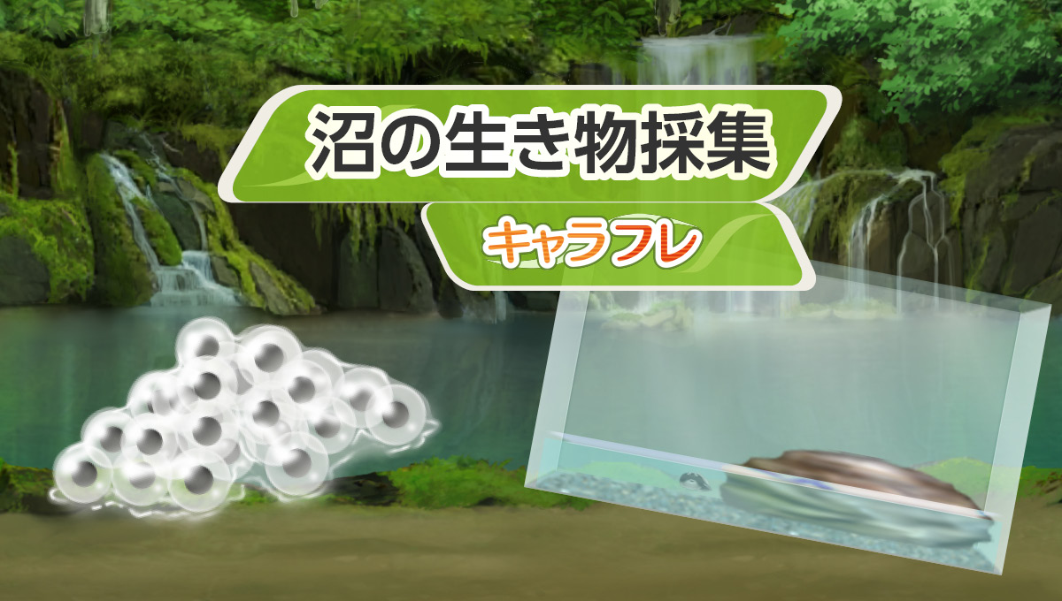 翔愛学園に隣接する裏山にある奥の沼にて沼の生き物の卵を採集し、部屋に飾って孵化と成長を観察するイベントです。