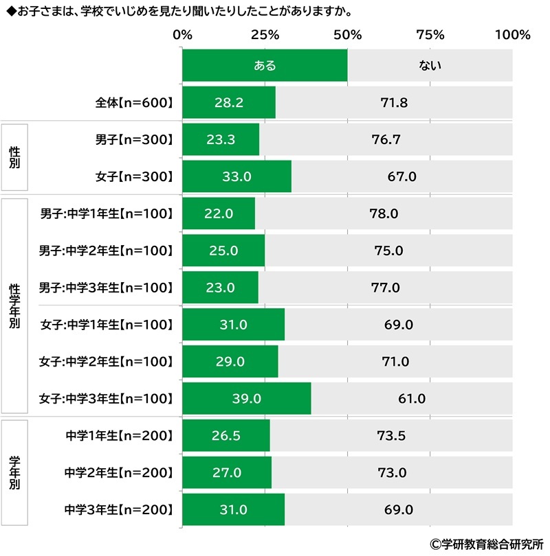 ★「学校でいじめを見たり聞いたりしたことがある」28%