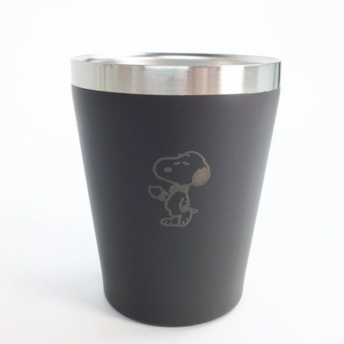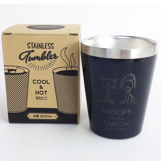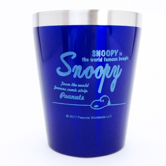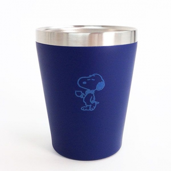 違うデザインもご紹介しちゃいます。ブルーのタンブラーにティータイムのスヌーピーのデザインです。お馴染みの人気のデザインですよね♪