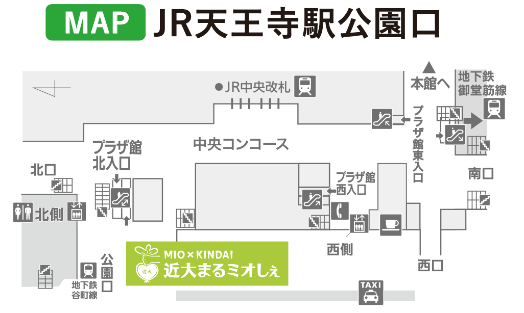 地下鉄御堂筋線や近鉄南大阪線をご利用のお客様はJR天王寺駅の中央コンコースを通って「公園口」までお越しください。