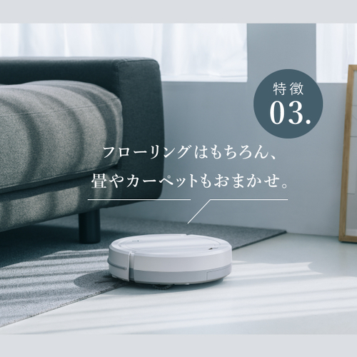 フローリングはもちろん、畳やカーペット、家具の下もおまかせ。余計な機能を省いたシンプル設計なので、家族みんなで安心して使えます。