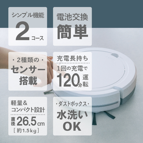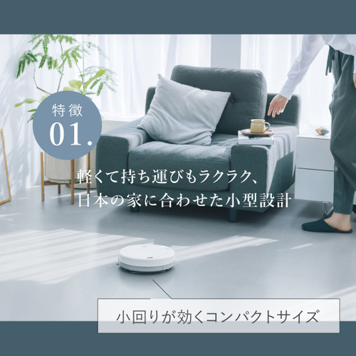 ボタン1つで部屋中くまなくお掃除できる「エイミー ロボットクリーナー」。