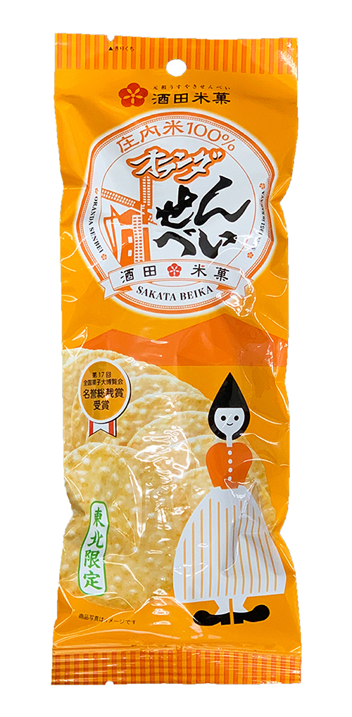オランダせんべいとは、山形県産庄内地域のうるち米をわずか3mmの極薄に焼き上げた、元祖うすやきせんべいです。昭和37年の発売以来、東北中心の販売で年間2億枚生産している当社の代表商品です。