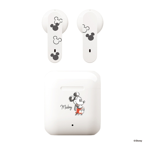 かわいいディズニーキャラクターデザインの完全ワイヤレス ステレオイヤホン インナーイヤータイプです。省電力、高速通信のBluetooth® 5.3を搭載しています。イヤホン本体は簡単に着脱でき、密着する違和感や長時間での疲労感を感じにくいインナーイヤータイプです。充電ケースは高さ39mmのコンパクトサイズで、イヤホン本体を収納しても約25gと軽く、持ち運びにも邪魔になりません。充電ケースはイヤホン本体を約2回フル充電できます。