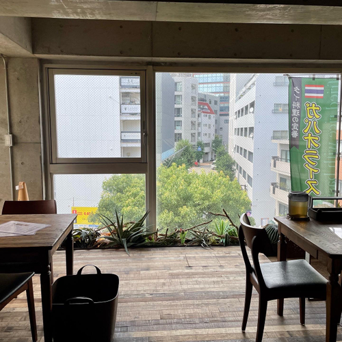 ガラス面を多用した開口部の広いおしゃれ店舗で4階からの見晴らしが抜群のメリーピース。