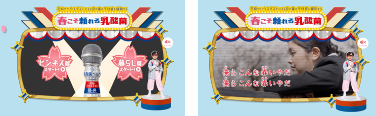 春の季節の目鼻の不快感対策に「乳酸菌ヘルベヨーグルト ドリンクタイプ」を頼ってほしいという気持ちを、吉幾三さんの名曲「俺ら東京さ行ぐだ」の替え歌に乗せて表現しています。