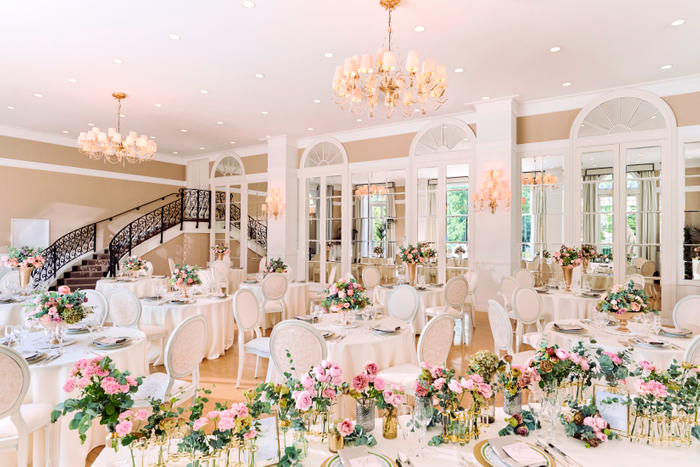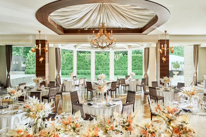 披露宴会場は、タイプの異なる3つ貸切邸宅からお選びいただけます。すべての邸宅には専用のゲートやガーデンが備えられ、ゲストとのリラックスしたフォトタイムやガーデンでのデザートブッフェなど、まるで新郎新婦のご自宅にゲストを招いたかのように、自由にご使用いただけます。