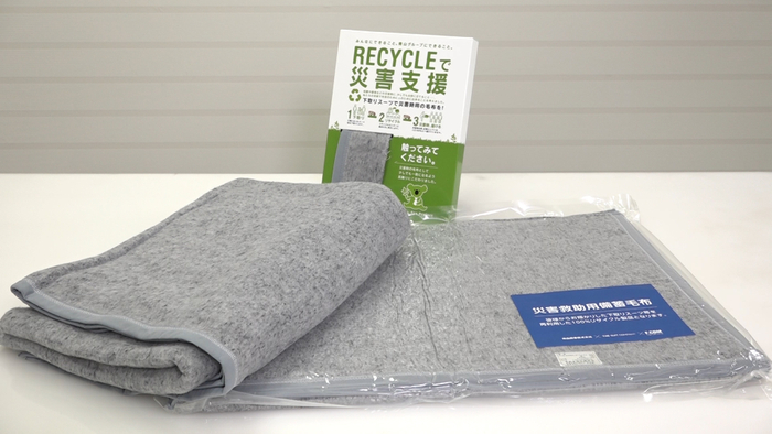 年間を通して衣料品を商品割引券と引き換える『下取りサービス』を「洋服の青山」「ザ・スーツカンパニー」などで実施しています。回収した衣料品は、主に海外へのリユース、車の断熱材や荷物の緩衝剤などにリサイクルされており、2018年からは近年の全国的な自然災害の増加を受けて防災毛布へのリサイクルも新たに開始しました。これに伴い2019年より、奄美市の他に、龍郷町(奄美大島)・石川県輪島市・新潟県佐渡市・熊本県天草市の計5自治体に寄贈させていただいております。