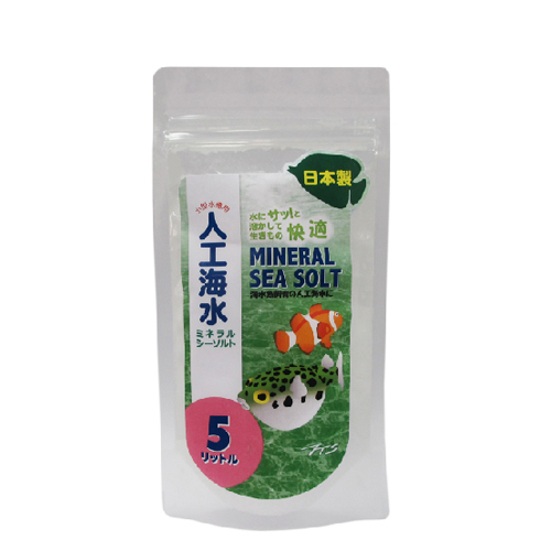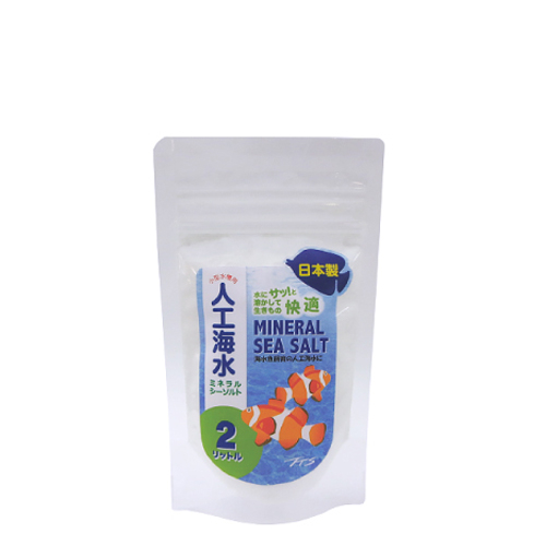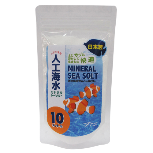 買い物広場HAPIでは【きんぎょとメダカのあら塩】のほかに海水魚用の人工海水【ミネラルシーソルト】も併せて展開中。