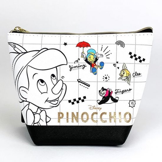 ホワイト×ブラックのシックなカラーに、ピノキオのデザインの他ジミニーやフィガロも描かれた大人カワイイデザインです。