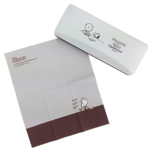 ケースにはスヌーピーとチャーリーブラウン。メガネ拭きにはウッドストック♡シンプルなのに、しっかりファンのツボを押さえたデザインです。