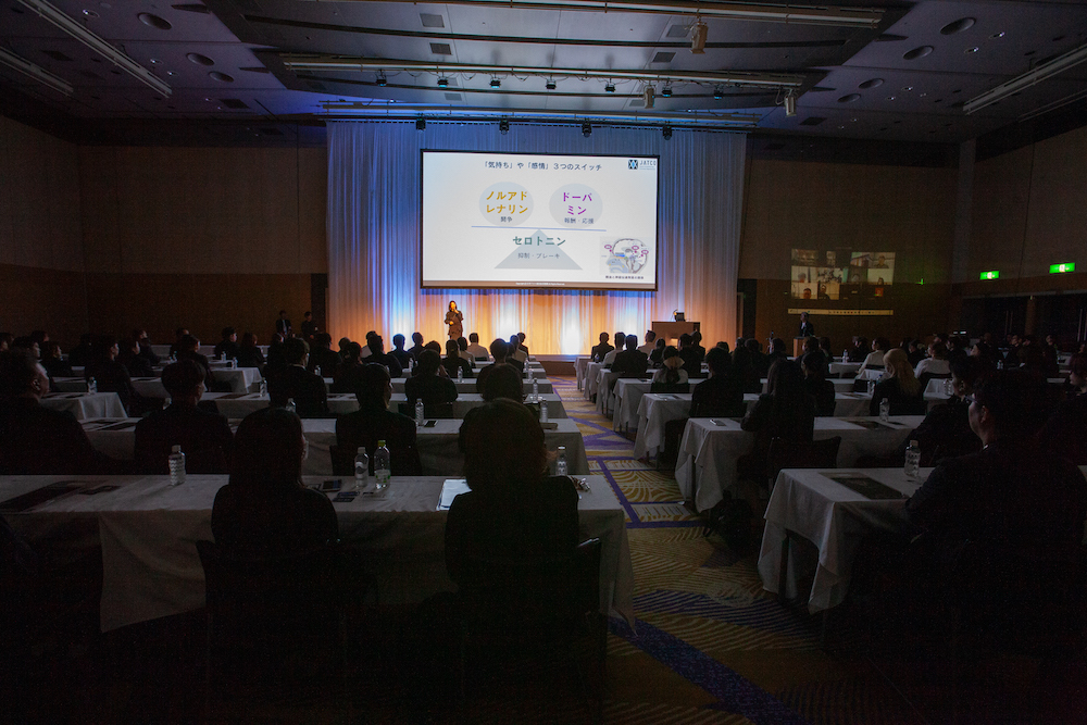 総会では、本プロジェクトのプロデューサーである株式会社MIWAIKEHATA取締役・池端 美和(武庫川女子大学薬学部 特任教授/アロマWell-Being研究家)が登壇。香りの科学的効能、フレグランスに込められた想いについてプレゼンテーションを行いました。全社員の手元に香りを封じ込めた特製アロマカードが配布され、社員が一斉に開封すると会場全体が「月読」の香りに包まれ、企業のアイデンティティを直接体感する象徴的な場となりました。