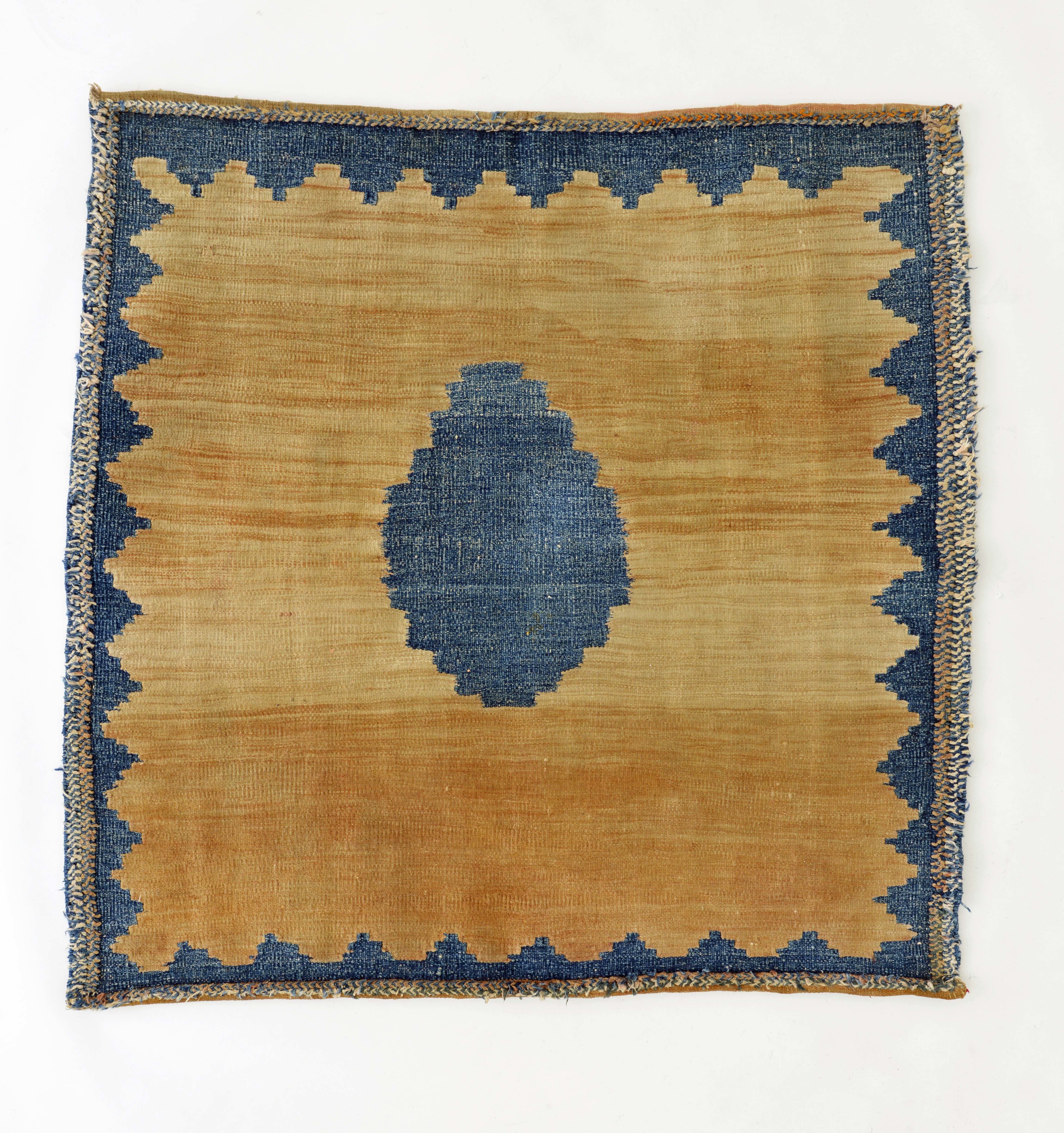 遊牧民の日常生活の中で最も身近にある染織品で、敷いたり、掛けたり、多目的に使われてきました。絨毯より織りが粗いため、柔らかく、優しい触りごこちのものが多いです。 他人にあげたり、販売するのではなく、自分や家族だけが使用する前提で作られたため、工芸品というよりは愛玩品のような存在ともいえます。簡明で可愛らしいモチーフが織られることも多く、織り手が自由な発想で作った生活用具としての味わいがあります。