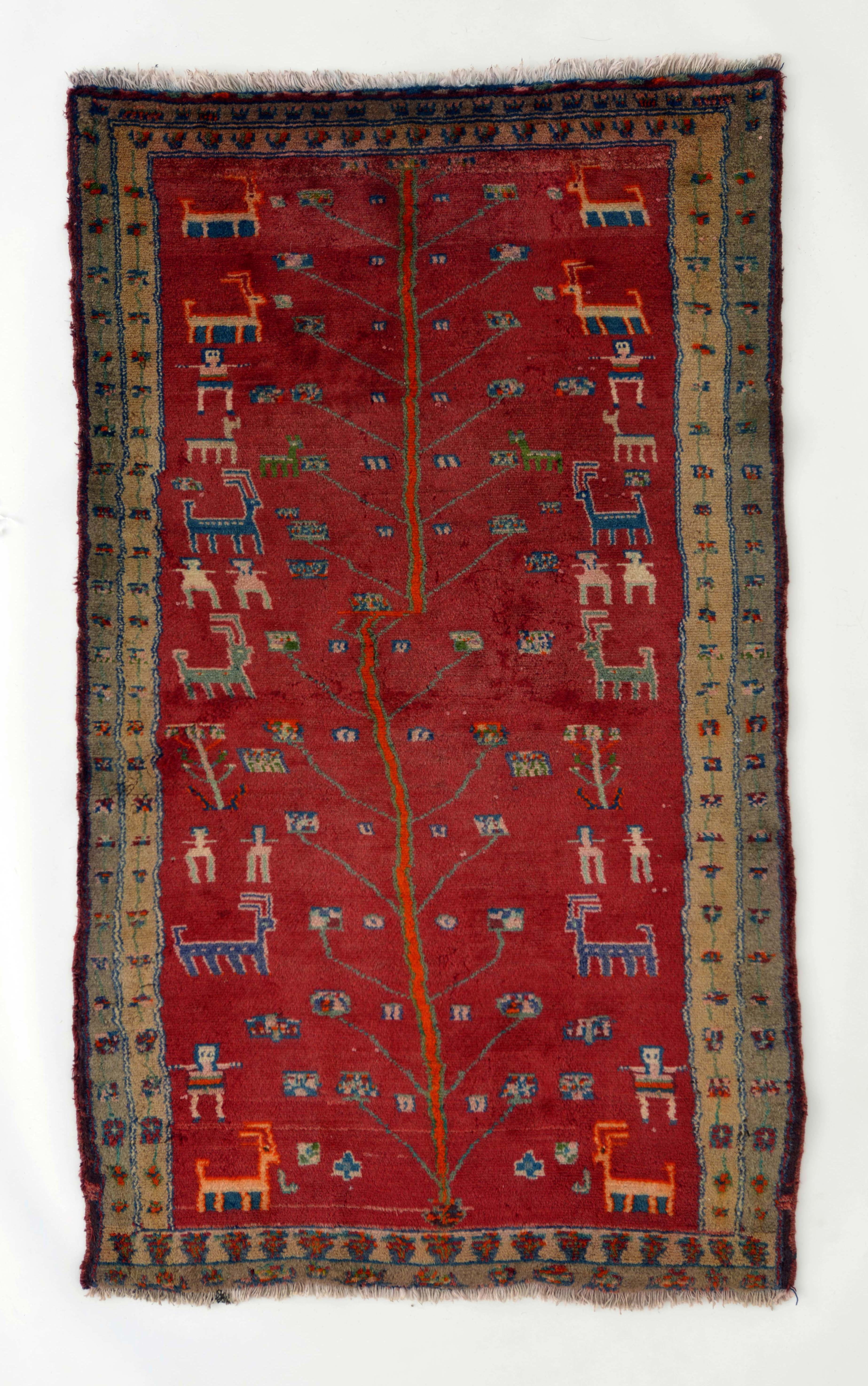 織りがずれてしまっているが、中央には生命の樹を立て、その周辺に人物、動物、花をたくさん描いている。