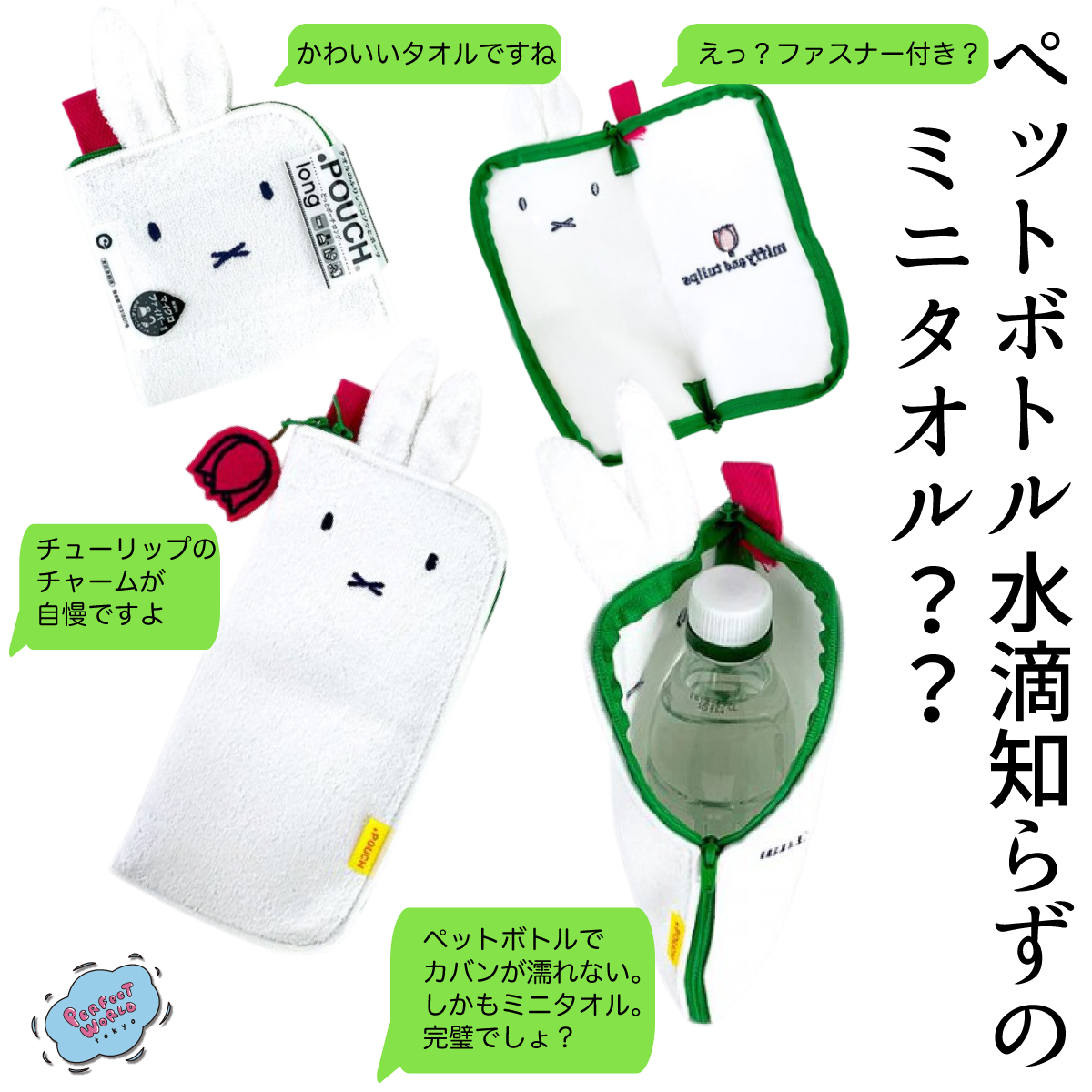 ペットボトルカバーとしても使えるどっとポーチに、ミッフィーの新作が加わりました。白地にフェイスの人気デザインで、お耳までついていてキュート♡ミニタオルとしても使えちゃうので、バッグに常備したいアイテムです。