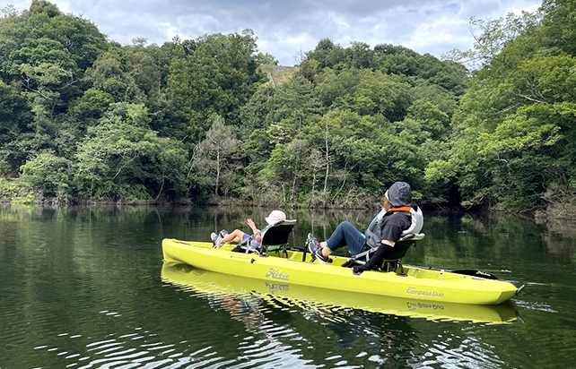 また、カヤックにはドリンクホルダーがありますので、水上で飲食を楽しめます。kiond内の「LibraryCafe」や、ヴィソン内で購入されたテイクアウトメニューをカヤックの上で楽しむなんてこともできます。