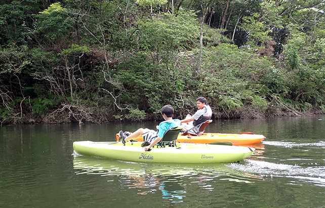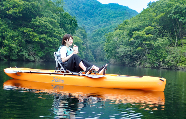 kiondのカヤック体験では「Hobie」というカヤックを使用しています。Hobieは、転覆を心配することなく自然を堪能できる革新的な足漕ぎカヤックです。自然を壊さないデザインと配慮が施されており、環境への負荷を最小限に抑えながら水上アクティビティを満喫できます。お子さまもペットも、どなたでも安心して水上散歩を楽しめるカヤックです。