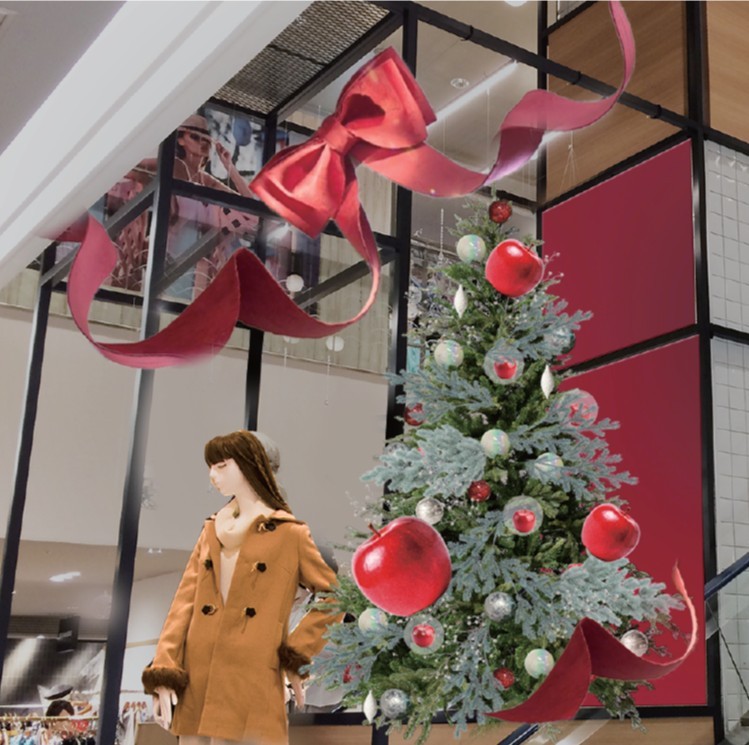 本年は夏に文化交流による地域活性化に向けた連携協定を締結した青森県黒石市に着目し、青森県の特産品であるりんごのオーナメントを200個使用した装飾を展開。ビジュアルには青森県黒石市の黒石ねぷたを制作するねぷた絵師によるイラストを使用し、繊細ながらも力強くクリスマスの世界観を表現いたしました。また、本年も1度きりで使い捨てになりがちな館内装飾のリユース、リメイクの取り組みを継続。2021年より続けている株式会社松屋とのコラボレーションにより、循環型の社会を見据えた装飾の在り方を提案いたします。是非この機会にご覧ください。