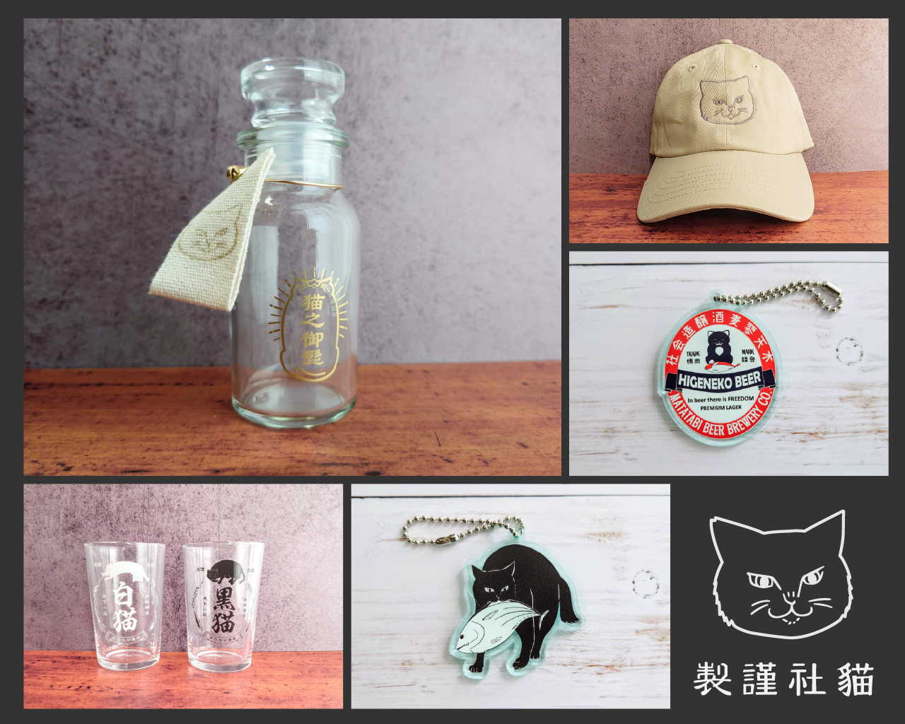 もし猫が人間と同じように生活する社会があったら、という設定の元、猫とレトロなラベルをモチーフにしたグッズを作ってるお店です。
