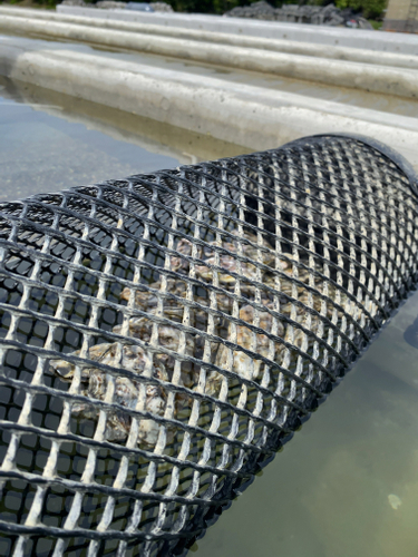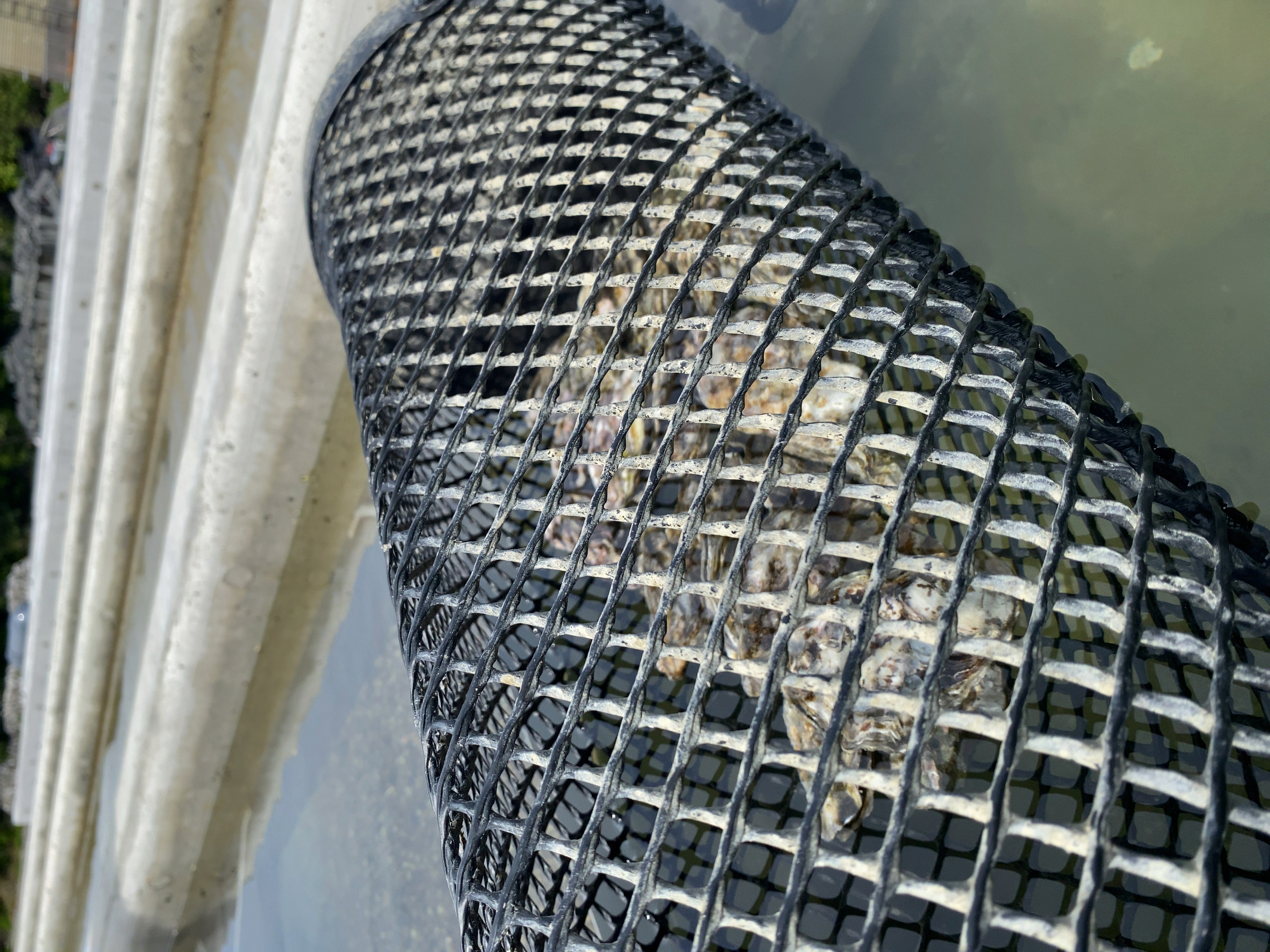 さらに、鈴木さんのこだわりは昨年10月に導入した最先端の養殖マシンにも。水に浮かぶたくさんのバスケットは、エアコンプレッサーとつながっていて、水面に浮かんだり沈んだりする仕組みです。フランスの企業から購入したこの機械により、自然の海では1日1回しか起こらない干潮と満潮の環境を人工的に何十回も作り出すことで、身の引き締まったカキができます。また通常の数倍のスピードで成長することで、年に3回の生産が可能になりました。