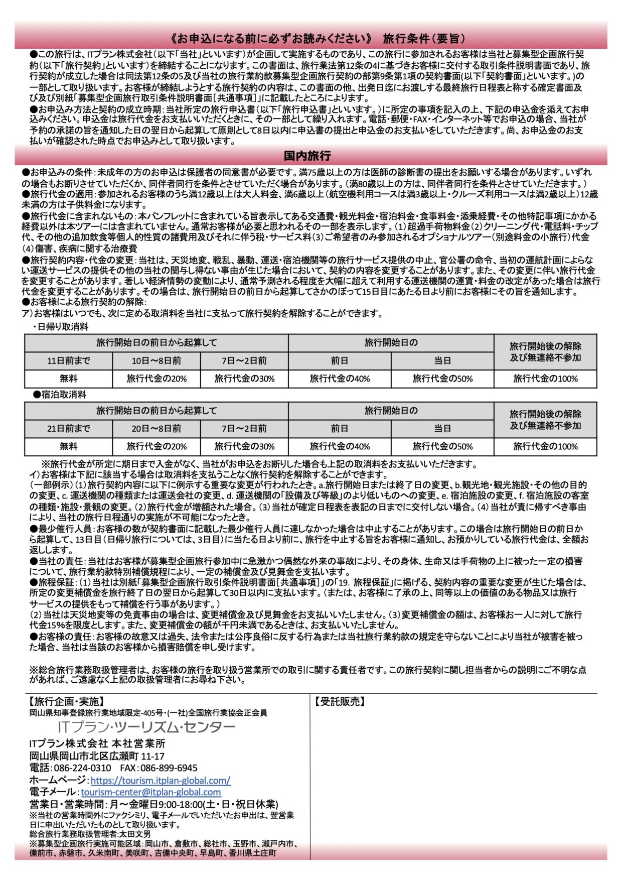 ・お問合せ・お申込方法: ITプラン・ツーリズム・センターホームページより