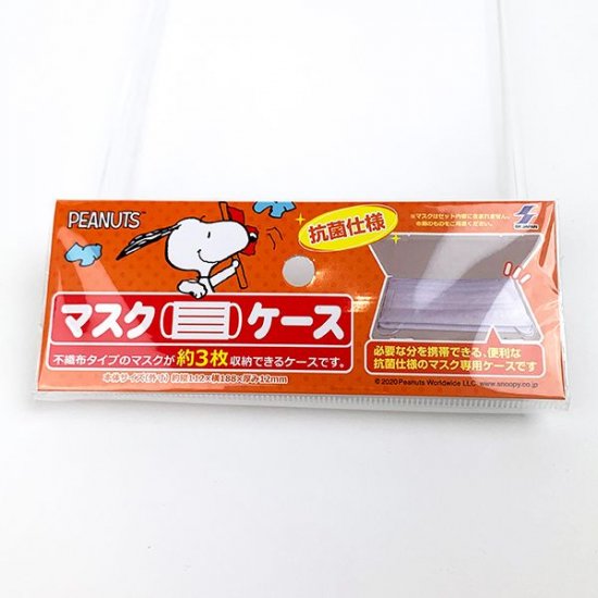 パチッとロックできるスヌーピーのマスクケース♪不織布タイプのマスクが約3枚収納可能です。