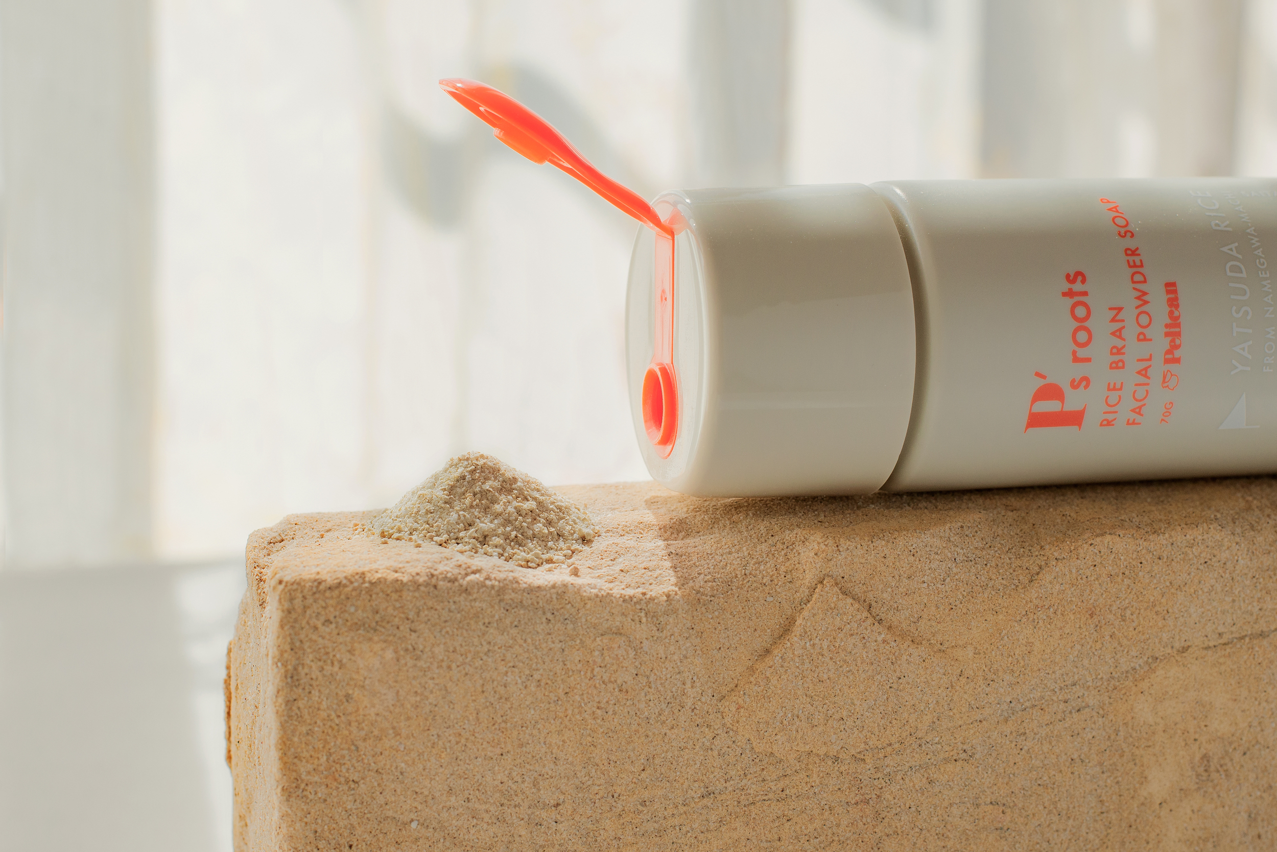 通常の化粧品原料の米ぬかは、本来の米ぬかが持つ美容成分であるオイルやエキスを絞った後のものを加工して作られていますが、今回発売する「ピーズルーツ米ぬか酵素洗顔パウダー」はオイルやエキスなどの美容成分を“搾る前”の米ぬかにこだわって開発しました。
