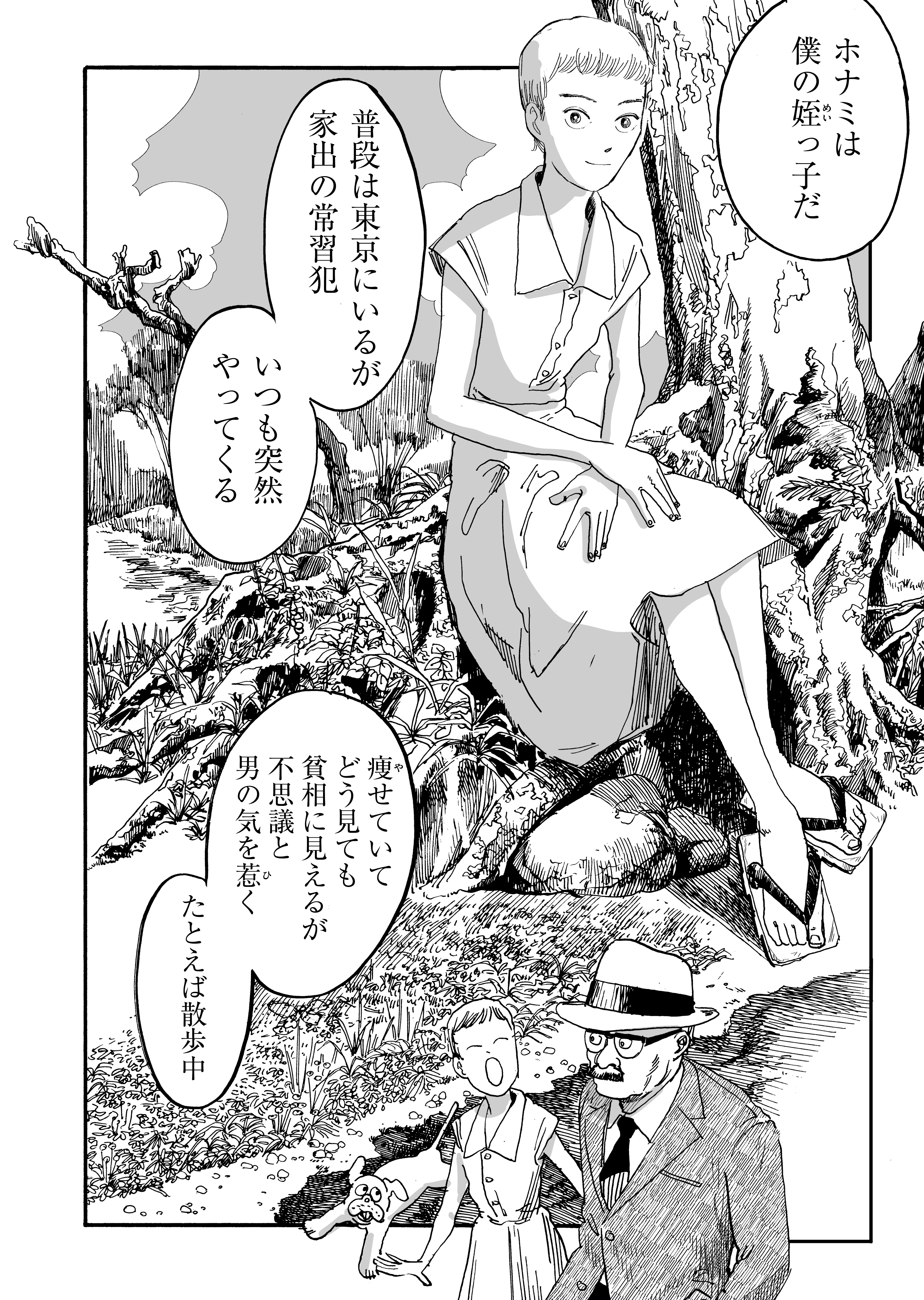 1992年、東京生まれ。2011年『幻燈』(北冬書房)にてデビュー。漫画雑誌『架空』の編集・執筆に関わる。2016年にはPIZZICATO ONE『わたくしの二十世紀』アナログ盤のジャケット・イラストを担当。また『貸本マンガ史研究』に水木しげるについての評論を執筆するなど、活躍は多岐にわたる。著書に『十代劇画作品集』(セミ書房)、『アントロポセンの犬泥棒』『電話・睡眠・音楽』(ともにリイド社)。