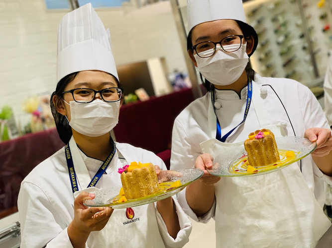 ブライダルではデセールをきれいに仕上げるセンスなどが必要になってくるので1年生の初めから学んでいきます。