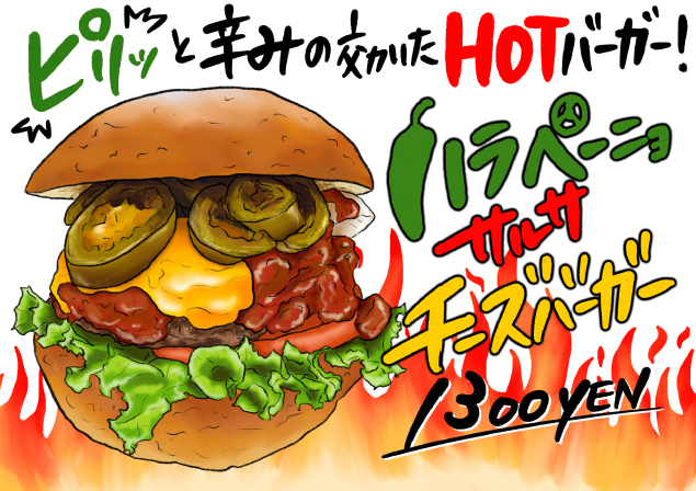 新商品「ハラペーニョサルサチーズバーガー」は、激辛ハラペーニョとふんだんに使った夏にぴったりのハンバーガー!