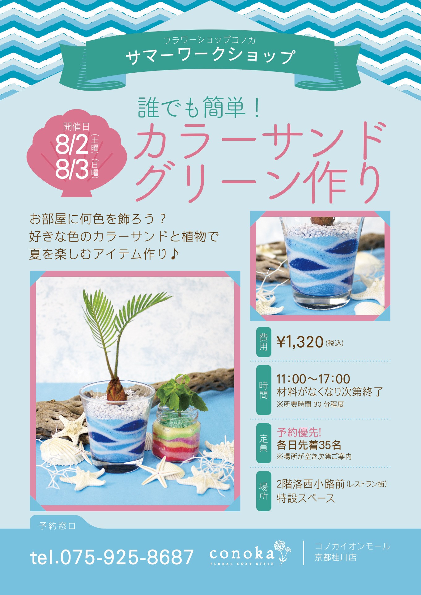 【コノカイオンモール京都桂川店限定】カラーサンドグリーン作り コノカのサマーワークショップ