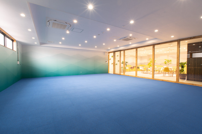 アズマハウスが運営するホテルのレストランスペースをリノベーション、オフィス2室、コワーキングスペース、宿泊施設を備えています。天然成分(素材:亜麻仁油、石灰岩、木粉、松脂、コルク粉、天然色素など)の建材「リノリウム」を床材に使用することで、地球環境に配慮したサスティナブル性を実現。自然豊かな和歌山の海・山をイメージした青・オレンジ・緑・黄の使い分けにより、仕事における重要な環境を整えた作りとなっています。