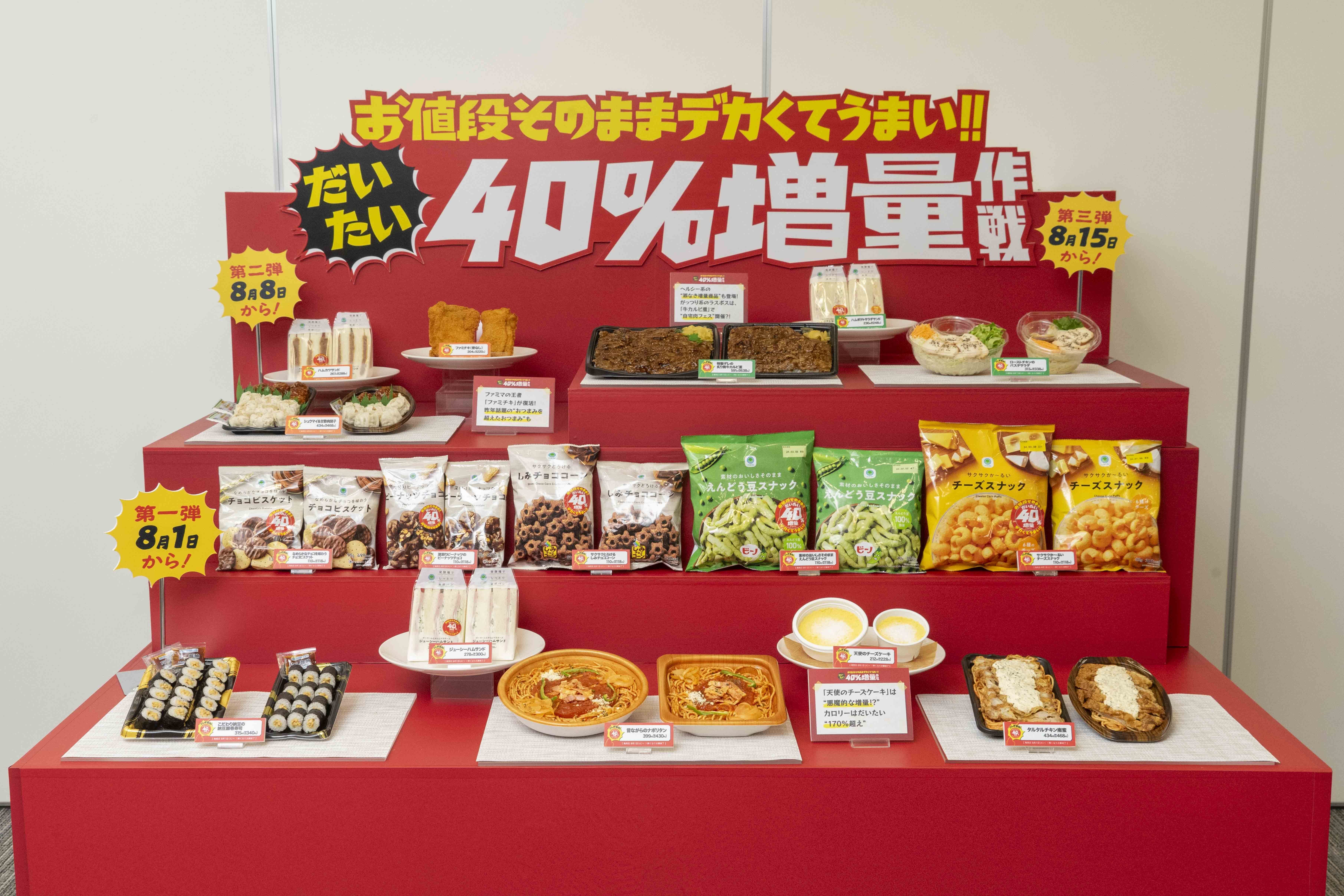 株式会社ファミリーマート(本社:東京都港区、代表取締役社長:細見 研介)は、継続して取り組んでいる5つのキーワードのうち「もっと美味しく」「たのしいおトク」の一環として、さまざまな人気商品を「お値段そのまま」で増量するキャンペーン(※1)を、2023年8月1日(火)から全国のファミリーマート約16,500店にて開催しております。