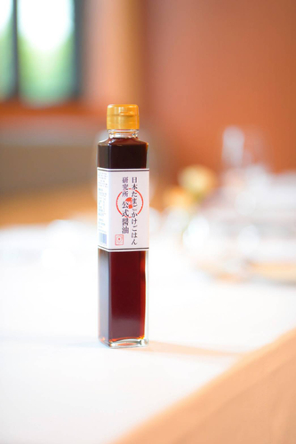 たまごかけごはんの向こう側に行けるお醤油も本数限定で販売します。日本たまごかけごはん研究所公式醤油1本1,200円(税込)。