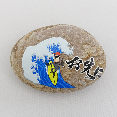 軽やかに帰宅することを、波乗りする男の子のイラストで表現した商品です。