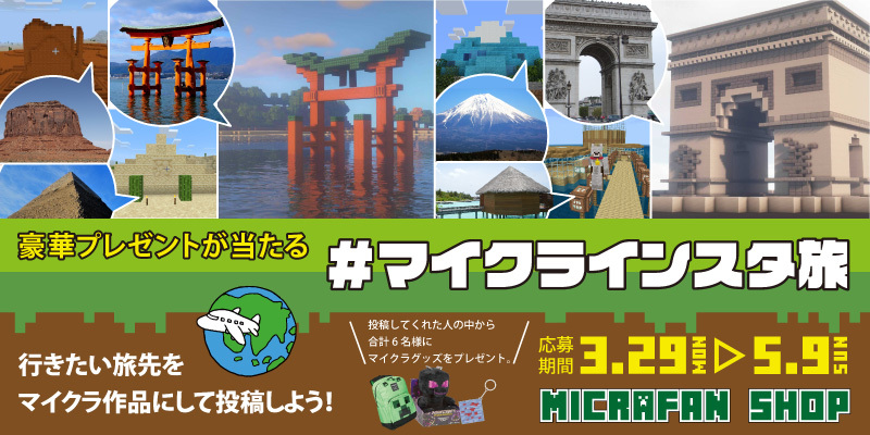 マインクラフトグッズが当たる「#マイクラインスタ旅」がスタート 3月29日(月)~募集開始!特賞は12,000円相当の豪華賞品