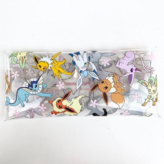 PVCの透明素材が人気のクリアマルチケースに、かわいい進化前のイーブイをはじめ進化系も大集合♪シャワーズやエーフィたちの姿が見えますね~