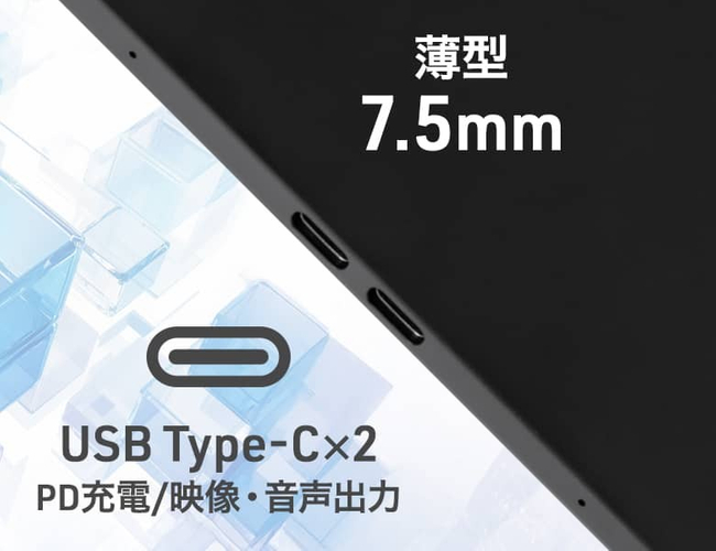 ■ 厚さ7.5mmの薄型、USB Type-C 2ポート装備