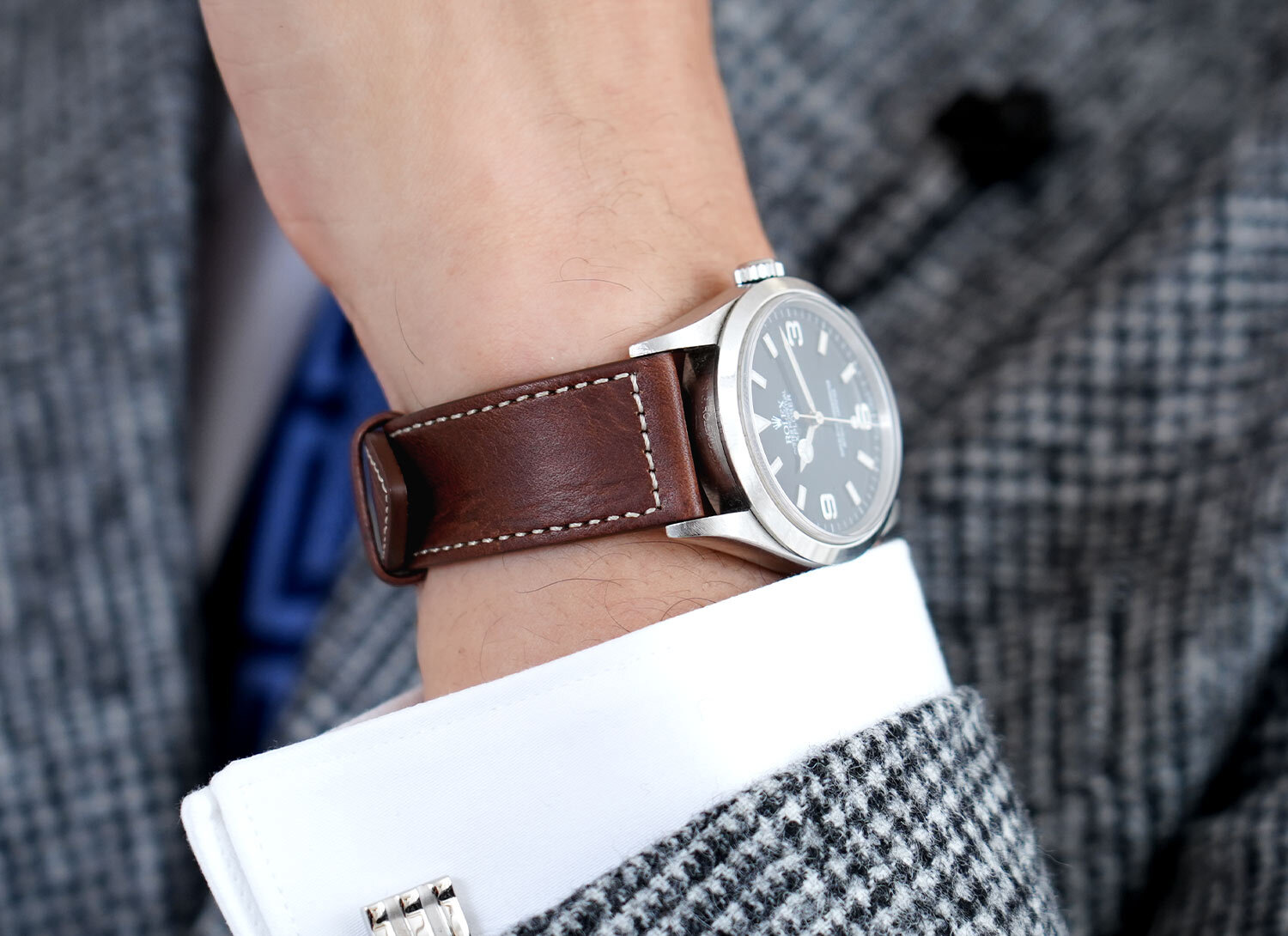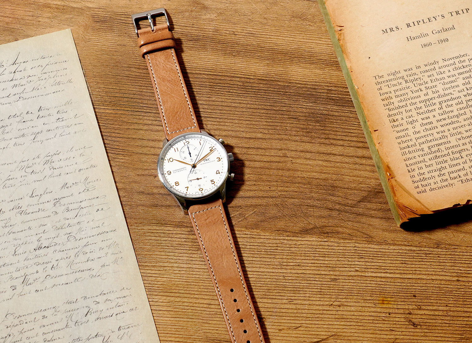 ベルトのシルエットとステッチはアンティークウォッチの風合いにマッチするようにシャープなデザインを採用。細やかなステッチが、腕元に上品な印象を与えます。