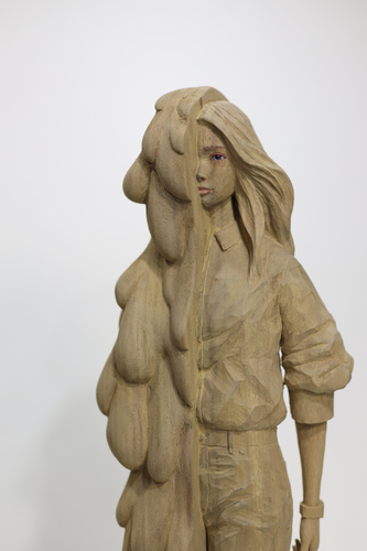 ただし、アートの中でも好きな物もあった。それは漫画やアニメのような生き生きとした動きや表情をした人物が出てくる作品だ。その頃から人間という最も身近な存在こそが一番惹かれる存在であり表現としても力強さを感じていた。また、動きにより時間や空間や時代を感じた。そして、このような想いから人間の顔や身体の美しさと木材の持つ温かみや力強さを持った人物像を制作し始めた。