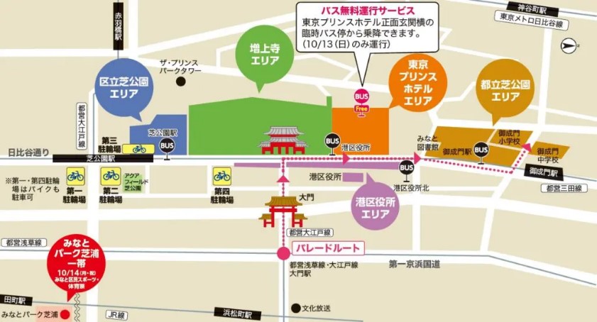 みなと区民まつりは増上寺等のエリアでの2日間実施され21万人程度の来場があるイベント