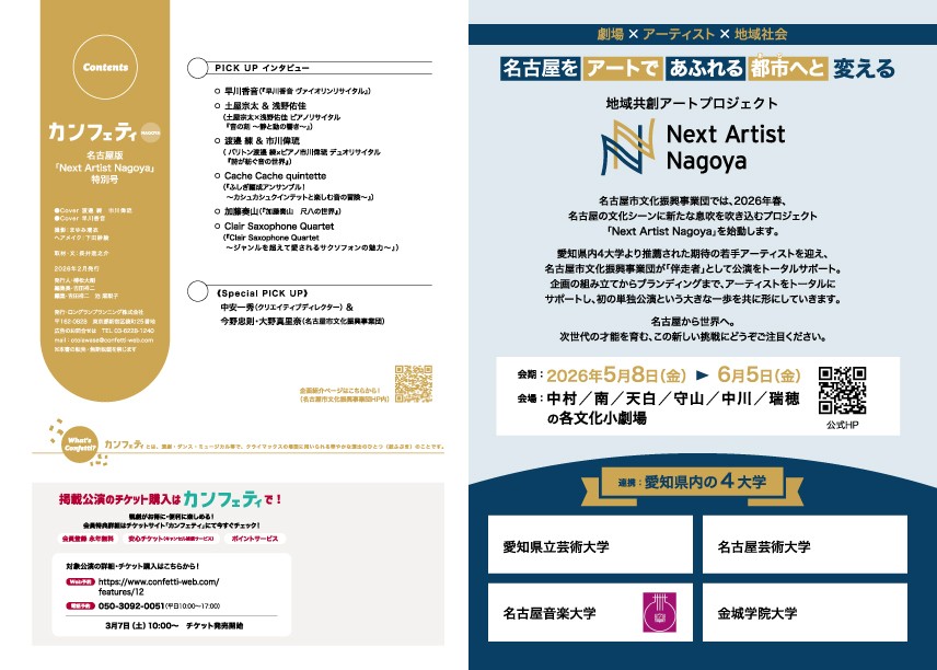 「エンタテインメントを、もっと身近なものに。」を理念とするロングランプランニング株式会社(東京都新宿区、代表:榑松大剛)は、シアター情報誌「カンフェティ」名古屋版を2026年3月に発行いたします。配布場所は、愛知県を中心とした劇場・公立文化施設・観光施設などに設置されます。