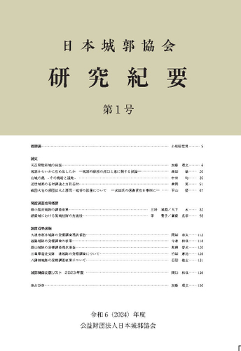 当協会加藤理文理事を委員長とする編集委員会で編集を行い、創刊号は編集委員による論文と、最新の城郭・城址の調査報告、城郭関連論文の最新リストなどで構成されています。尚、2025年に刊行予定の第2号については、掲載論文の公募を予定しています。