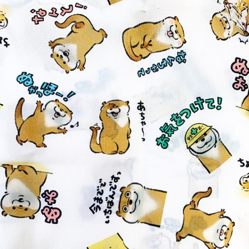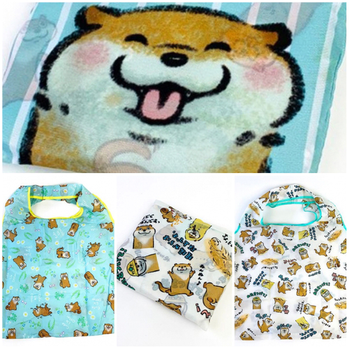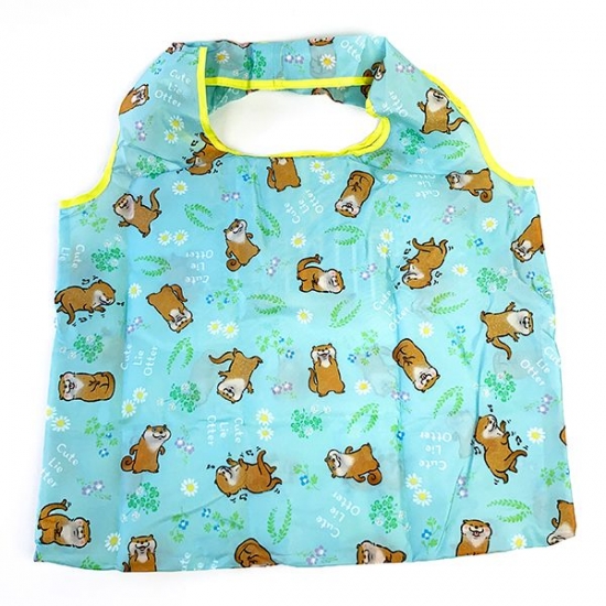 いろんな表情のカワウソが楽しめます。小花柄がきれい。エコバッグ、2柄あるんです。どちらにしますか?