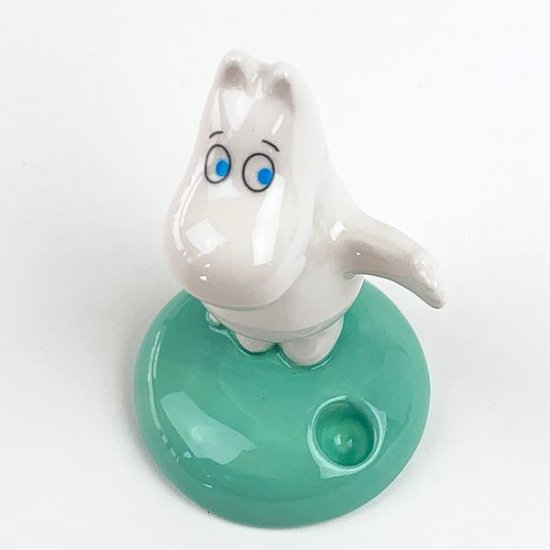 磁器製でツヤ感のある、ムーミンのペンスタンドです。片手を横に広げたポーズで、いつでもペンをホールドするスタンバイ中♪台座もナチュラルなグリーンで、お部屋やデスクにも馴染みます。