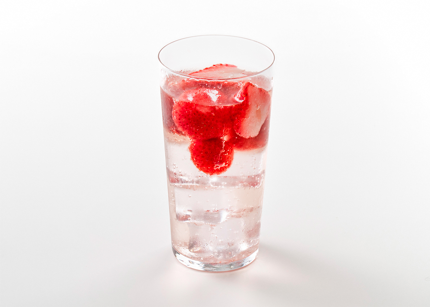 やまや蒸留所の苺リキュール「いちごにゃん」のソーダ割りにいちごをたっぷり入れました。果肉を潰しながら飲むのがおすすめです。