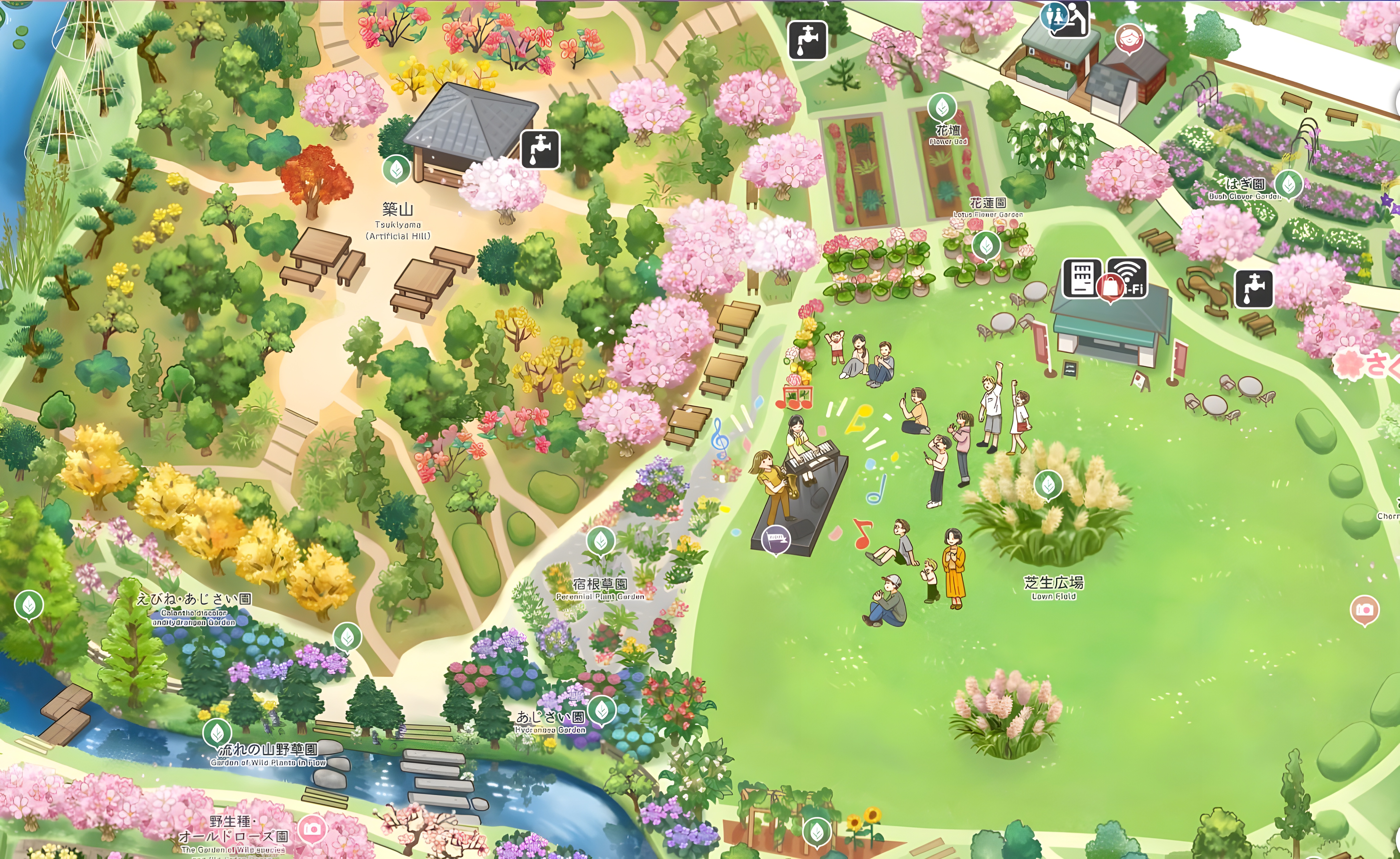 神代植物公園を訪れる前に、事前に最新情報を確認することで、予定を立てるのに役立つほか、美しいイラストを使ったバーチャルな観光体験としてもお楽しみいただけるデジタルマップです。