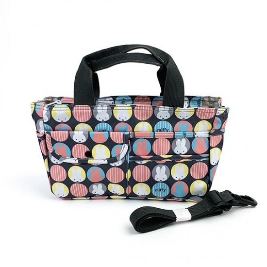 ブラウンの落ち着いたオータムカラーに、ドットの中にミッフィーのお顔がデザインされた大人カワイイバッグです。